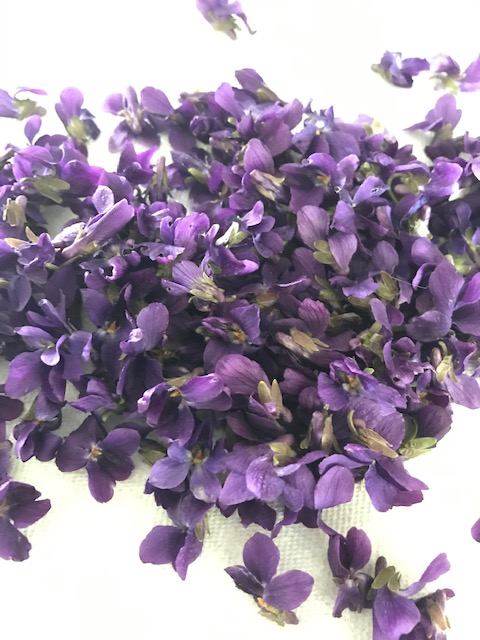 Meanwhile, the violets are blooming in my lawn. I was delighted to find them here when we moved in 15 years ago. They are fragrant, but their odor is fragile and difficult to capture. I have candied them with mixed success, and tinctured them. Steeped in vodka, they produced a beautiful, fragrant liquid. Yet it was unstable, and after a few months on the shelf, the color and scent faded.